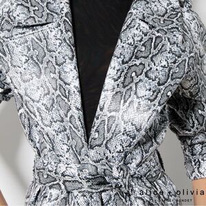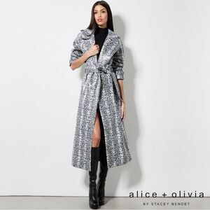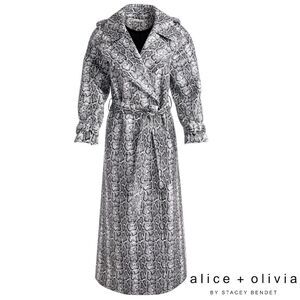 Alice + Olivia **NWT** Jarrett Vegan Leather Trench In Off White/Black Python