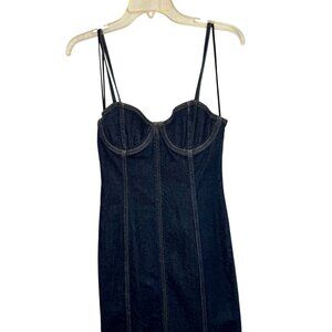 Tags: alice + olivia, denim maxi dress, dark rinse denim, bustier dress, corset dress, godet hem dress, long denim dress, alice and olivia dress, structured denim, fitted maxi, evening denim dress, luxury casual, statement maxi dress, designer denim