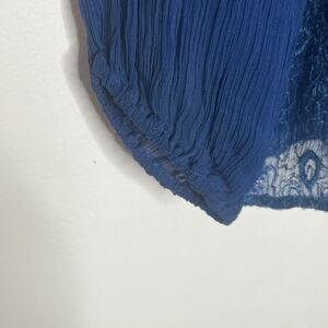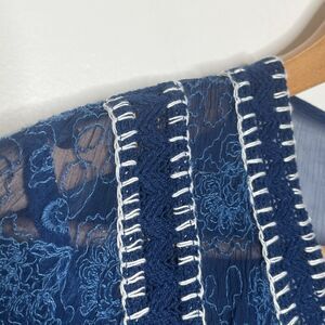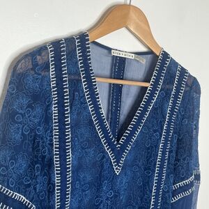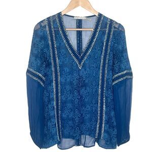 Alice + Olivia Natalya Sheer Embroidered Long Sleeve Blouse Blue Womens Small