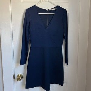 Elegant navy mini dress. Long sleeves. V-neckline. Perfect for evening wear. Color is more solid navy than two-toned.
