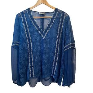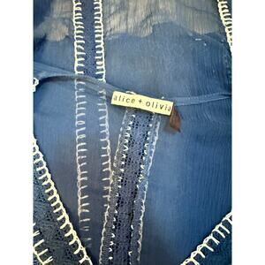 Alice + Olivia Navy Sheet Embroidered Blouse Womens Size Medium Boho Chic V-Neck