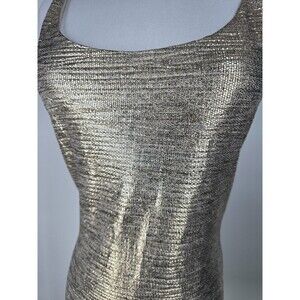 Alice + Olivia | Nelle Fitted Mini Dress Champagne Gold Metallic 12 NWT $275