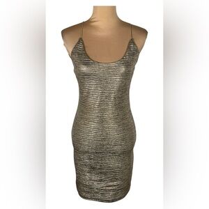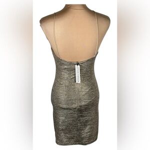 Alice + Olivia Nelle Fitted Mini Dress Champagne Metallic Bronze Size 6 New