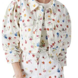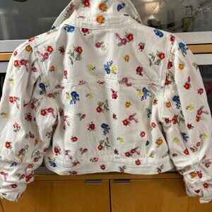 Alice + Olivia Off White Multi Renee Embroidered Cropped Denim Jacket Size S