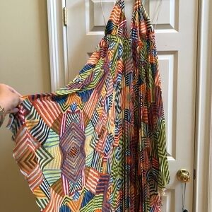 Handkerchief Hem, Open Back, Halter Top, Empire silhouette, Maxi