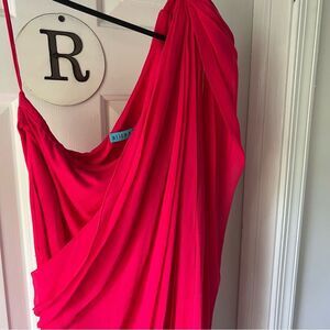 Alice + Olivia Womens One Shoulder Dress Ruched Bodycon Party Cocktail Dress. Hot pink and sheer draping details. Ruching is extremely flattering and bodice is stretchy.