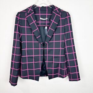 Alice & Olivia Pink Black Window Pane Mya Blazer Jacket Work Office Career 2