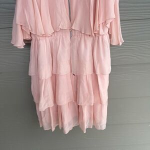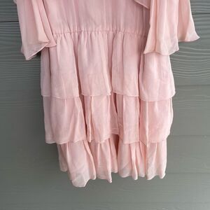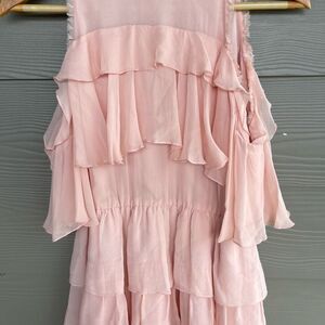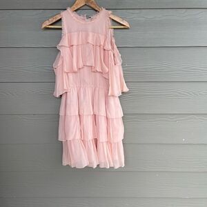 Chic mini dress with ruffle layers. Cold shoulder design. Perfect for a stylish look.