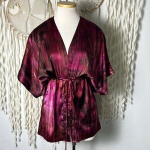 Alice + Olivia Pink Silk Kimono Sleeve Hook and Tie Front Blouse Size XS/S