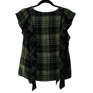 Alice + Olivia Plaid Ruffle Janet Blouse Top Sz S Dark Academia Boho EUC