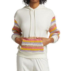 Alice + Olivia Nisa Crochet Sleeve Pocket Hoodie Pullover Ivory Multicolor Small