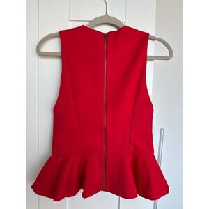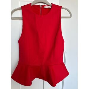 Alice + Olivia Poppy Bright Ruby Crew Neck Peplum Zippered Top, Size M, Like New