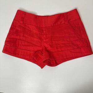 Alice & Olivia Poppy Classic Cady Cuffed Twill Shorts Mid Rise Slash Pockets Med
