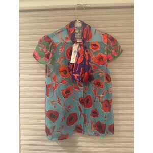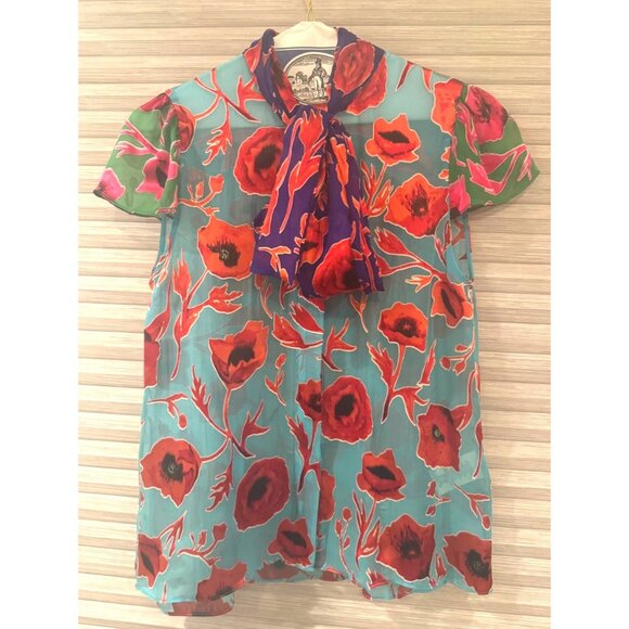 Alice + Olivia Poppy Garden Bluebird Floral Print Blouse XS