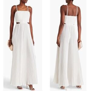 Alice + Olivia Powell Pleated Wide Leg Cutout White Jumpsuit Size 4