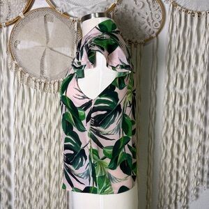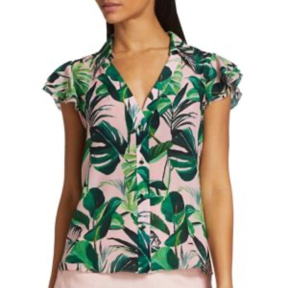 Alice + Olivia Randa Ruffle Henly Top in Silk Palm Print Size XS