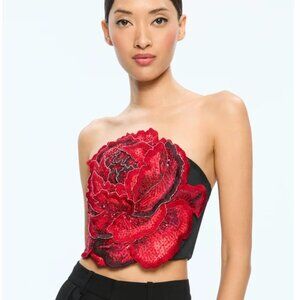 Alice + Olivia Randie Floral Appliqué Bustier Crop Top, 0