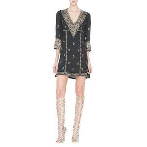 Alice + Olivia Ray Embroidered Mini Dress, Black/gold size M