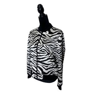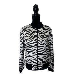 Alice + Olivia Reversible Zebra Feminist Bomber Jacket NWT Size Large