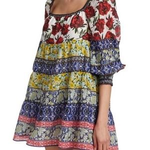 Alice + Olivia Rowen Square Tunic Floral Cotton Silk Short Casual Dress Size M