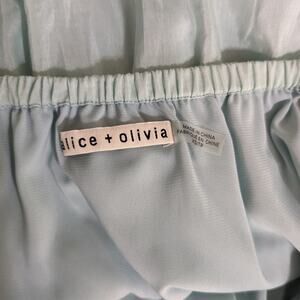 Alice + Olivia Rowen Tiered Square Neck Mini Dress Blue Puff Sleeves XS Preowned