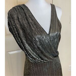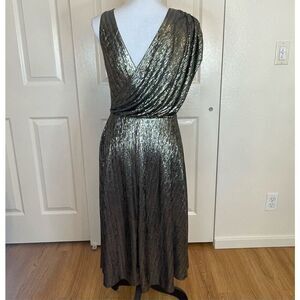 Alice + Olivia Roxy Front-Drape Midi Dress Metallic Size 8