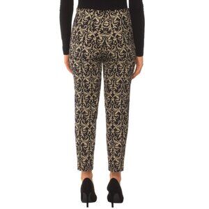 Alice + Olivia 'Royce' skinny pants featuring a textured damask fabrication with hints of metallic gold threading throughout.