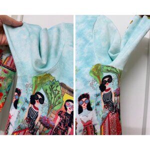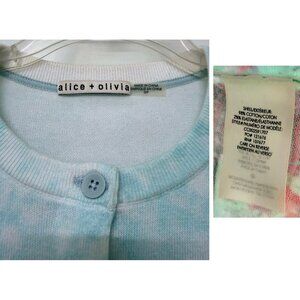 This Alice + Olivia Ruthy Palace Cardigan Sweater is in great condition! Features a blue green Stace Face floral print. Cotton, round neckline, button down style, long sleeves. There is a small area of seam stretching on a back armhole. Minor wear throughout.