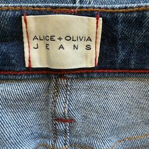 Alice and Olivia Rye skirt, two-tone denim maxi, contrast stitch jean skirt, designer denim skirt, slit maxi denim skirt, Alice Olivia size 26 skirt