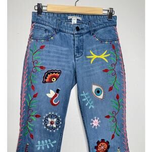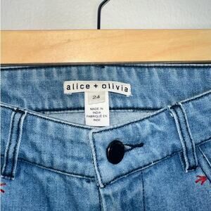 Alice + Olivia Rylie Embroidered Low Rise Bell Bottom/Flare Jeans Blue Size 24