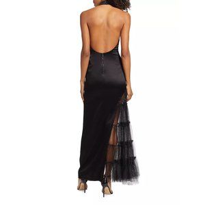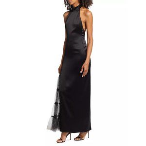 Alice + Olivia Ryn Tulle-Panel Satin Gown - elegant and seductive, size 8.