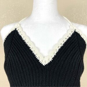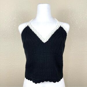 Alice + Olivia Saran Crochet Knit Cropped Halter Top Size Large Women
