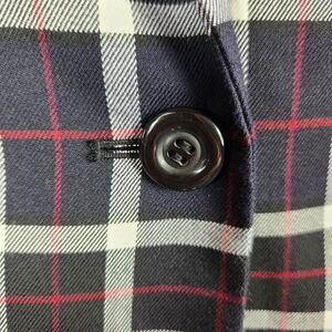 Alice + Olivia Savetta Plaid Windowpane Lamb Leather Elbows Blazer Navy Large