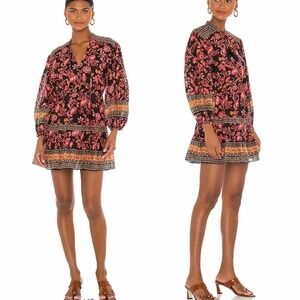 Alice + Olivia Sedona Tiered Floral Silk Blend Mini Dress Size 8 Fall Into You Black Multi MSRP $440. New with tag, no noticeable flaws. Measurements are approximates only.