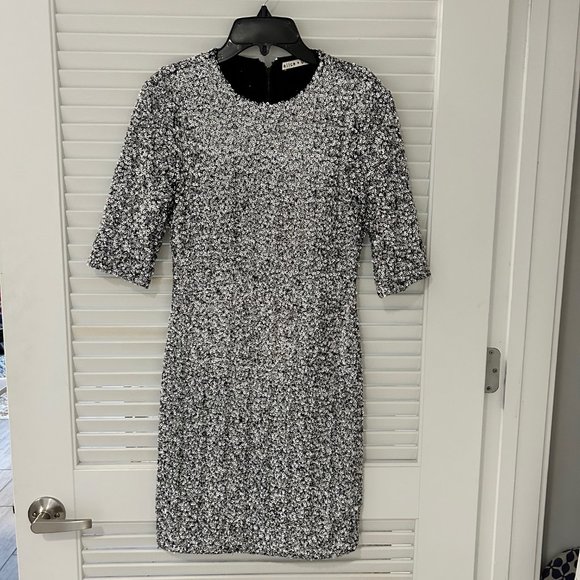 Alice + Olivia Sequin Strong-Shoulder Mock-Neck Dress