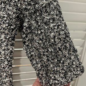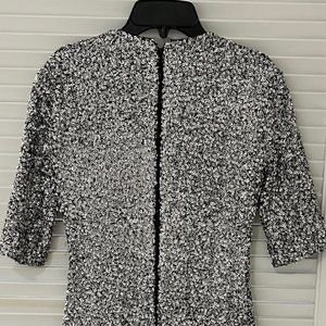 Alice + Olivia Sequin Strong-Shoulder Mock-Neck Dress.