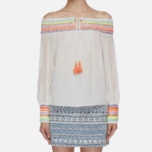 Alice + Olivia Sharyl Rainbow Peasant Top $395 M L Embroidered Blouse Off Shldr
