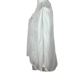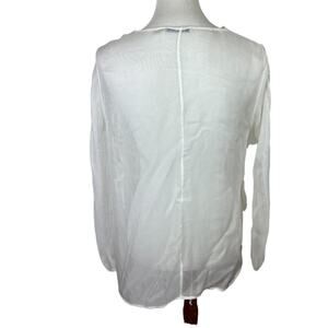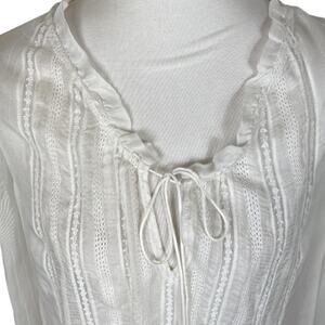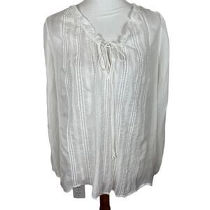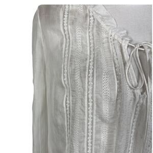 Alice + Olivia Sheer White Peasant Blouse w Lace Detail and Tie Neck Sz S