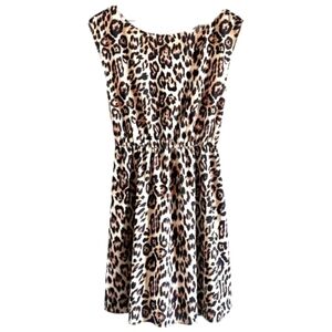 Alice + Olivia Shelie Leopard Open Back Dress Blk/Brn/Tan Cap Sleeve Lined Sz XS