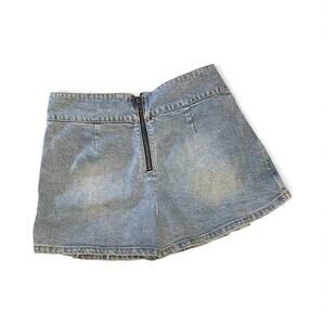 It's a skirt! It's shorts! It's a skort. Everything you love about both, in one piece and rendered in the perfect washed denim. It includes a mid-rise, mini length and just enough stretch to keep you super-comfy.