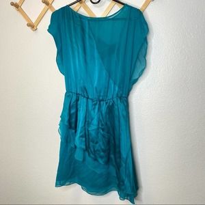Alice + Olivia Silk Asymmetric Mini Dress Blue Turquoise Small