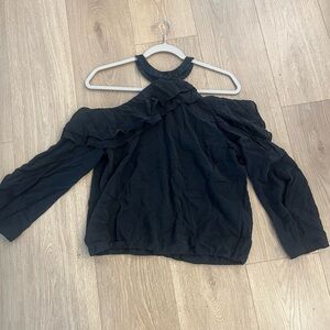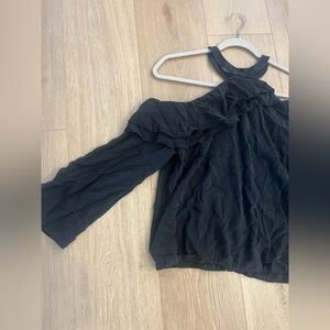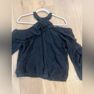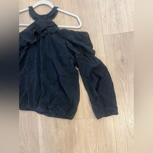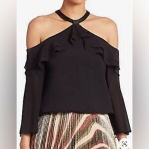 Alice + Olivia Silk Black Ruffle Long Sleeve Blouse Size Large