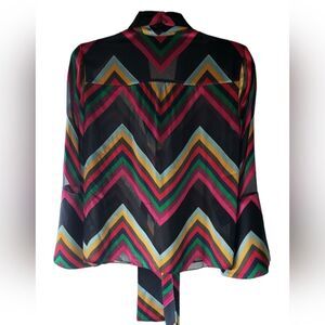 Alice & Olivia Silk Blend Multi Color Semi Sheer Long Sleeve Blouse Size Small