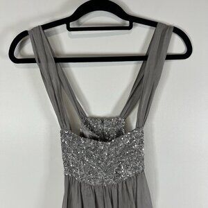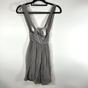 Alice + Olivia Silk Dress Babydoll Sequin Bust Gray Silver Fairy Glam Sz M