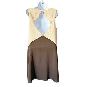 Alice + Olivia Silk Dress Size Large Tan Brown Sleeveless Lined A-Line Trapeze
