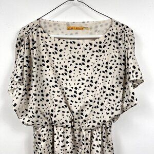 Alice + Olivia Silk Dress White Black Flutter Sleeve Elastic Waist Size Small
