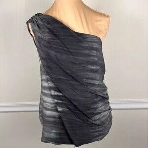 Alice + Olivia Silk Elegant Gray Grey Draped One Shoulder Top S Small