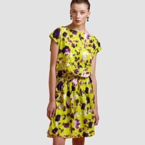Alice and Olivia Chartreuse Lime Green Purple Pink Floral Casual Summer Dress Date Night Out Party