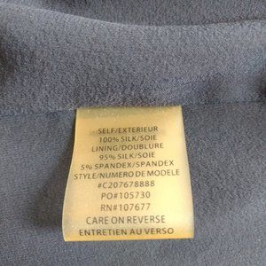 This beautiful silk Alice + Olivia dress drapes beautifully. This dress is an explosion of colorful flowers, yet remains tastefully subdued. Lining 95% silk 5% spandex. Elastic waist and no closures on this pull-on dress. Bodice fabric blouses over the waist a bit. Lovely draped shape at back neck hangs lower than the front of the neckline. Fits high on the waist and above knee.