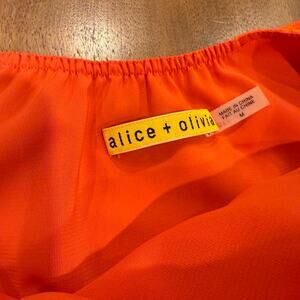 Alice + Olivia Silk Halter Backless Mini Dress Asymmetrical Ruffle Orange Sz Med